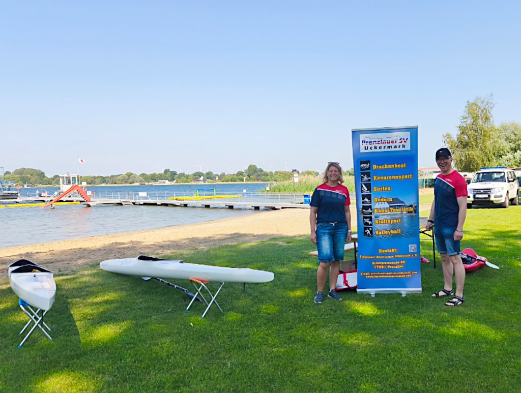 Unter dem Motto „Du und dein Verein“ folgte der PSV der Einladung der Stadt Prenzlau zum diesjährigen Kinderfest ins Seebad. Der Prenzlauer Sportverein Uckermark e. V. präsentierte sich mit einer Auswahl an Kanus und einem kleinen Bobby-Boot zum Ausprobieren auf dem Wasser für die Kleinsten. Den Stand betreuten André Eckert und Susanne Winter. Für die Größeren organisierte Harald Müller eine Drachenboot-Ausfahrt. Mit Schwimmwesten und Stechpaddel ging es hinaus auf den Uckersee.